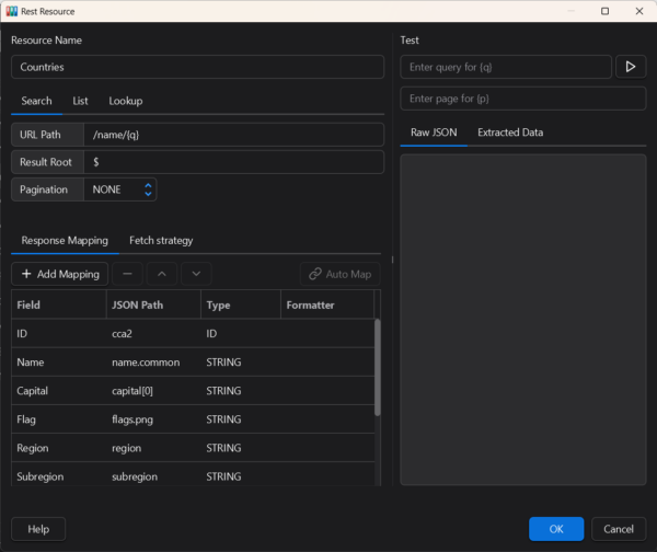 • JSON Path: The path to extract the specific value from the object. Examples: name.common (for nested text) or capital[0] (to get the first item in an array).